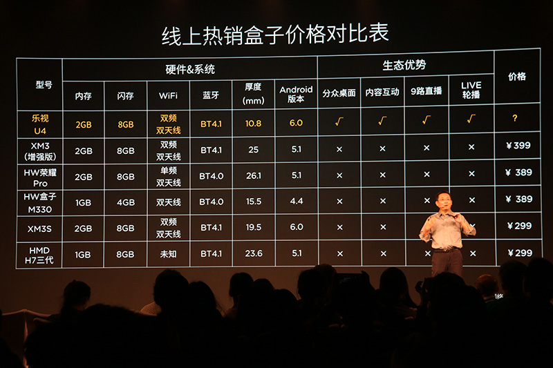 12月20日,“共·生”乐视共享大屏生态世界发布会在北京举行。发布会上,共发布了5款新款爆款产品,包括针对拥有高端观看体验的消费者推出的,之前只在美国发售的uMax85超级电视;针对大众需求推出的X65的升级版X65S;针对非智能电视用户推出的大屏生态新物种-屏霸;还有拥有震撼体验的乐视无线家庭音响以及重返中国市场的爆款-乐视盒子U4和U4 Pro。