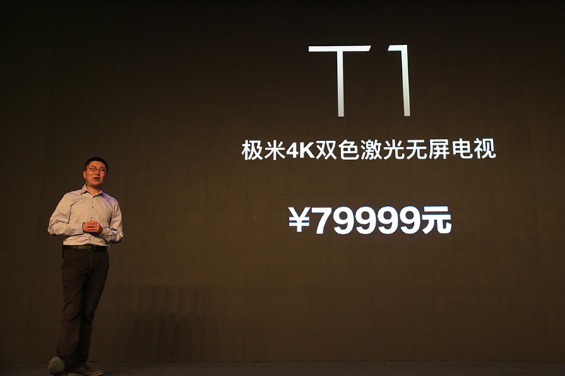 【2017年7月25日 智能公会 北京报道】无屏电视开创者极米科技召开发布会,推出全球首款120英寸4K双色激光无屏电视T1、100英寸1080P激光无屏电视A1 Pro和A1,三款产品价格分别为79999元、29999元和22999元。极米激光系列产品的面世,将激光无屏电视的产品品质和用户体验提升到全新高度,其中T1不仅以史无前例的配置成为行业内亮度最高、色彩最好、投射比最好和音质最好的激光电视,更让激光电视突破局限,成为无时无刻都能融入居家生活场景的品质生活载体。