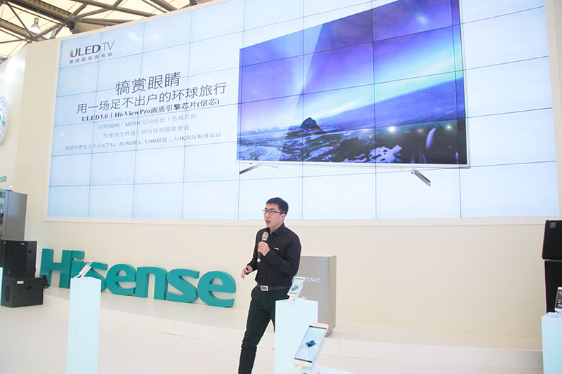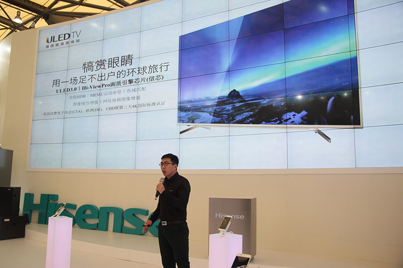本届AWE展会现场,海信发布了其2016年度首个面向全球发售的电视新品—MU7000“世界观”系列ULED超画质电视,该系列新品将在全球67个国家销售。