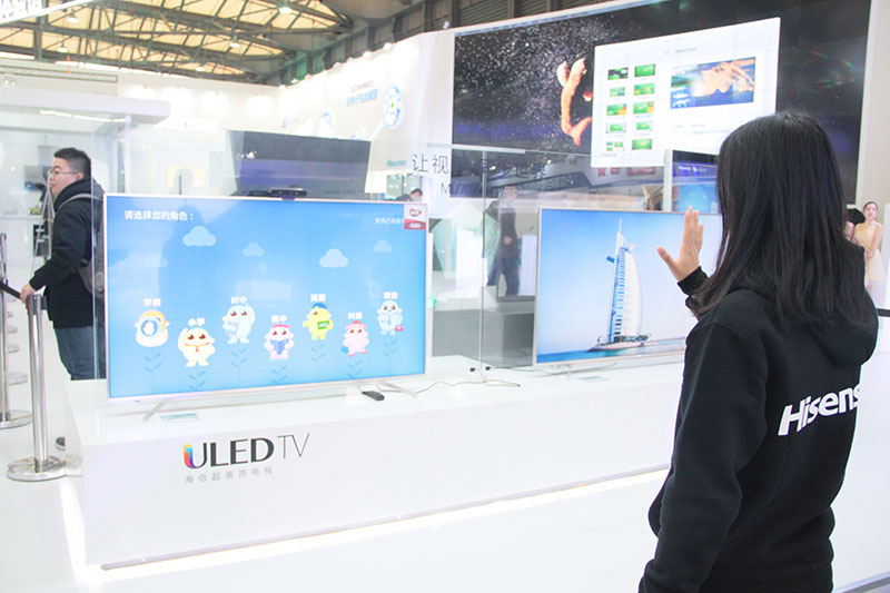 【智能公会 上海报道】3月9日,在2016中国家电及消费电子博览会上,高居全球彩电三强的海信电视展出强大产品阵容,其最新发布的ULED超画质电视、激光影院电视和全新智能交互体验产品科技感十足,让人印象深刻。