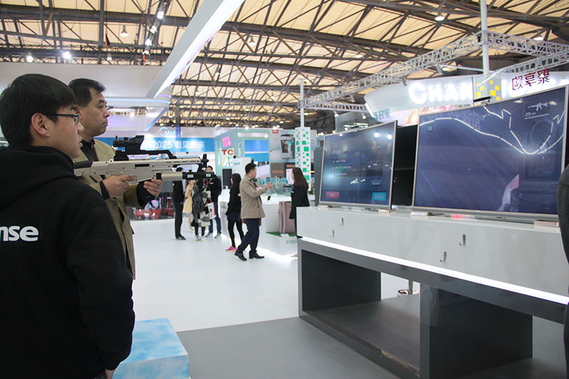 在海信最新发布的MU7000系列ULED电视产品体验区,可以体验到最新全场景手势识别操控。3D外设摄像头可以对人体手部动作进行精确的捕获和识别,不用遥控器也可以玩转功能强大的智能电视。此外还有智能健身房、全面枪战、疯狂赛车体验区,海信智能电视的颠覆体验让电视这块大屏充满了活力和无限想象空间。