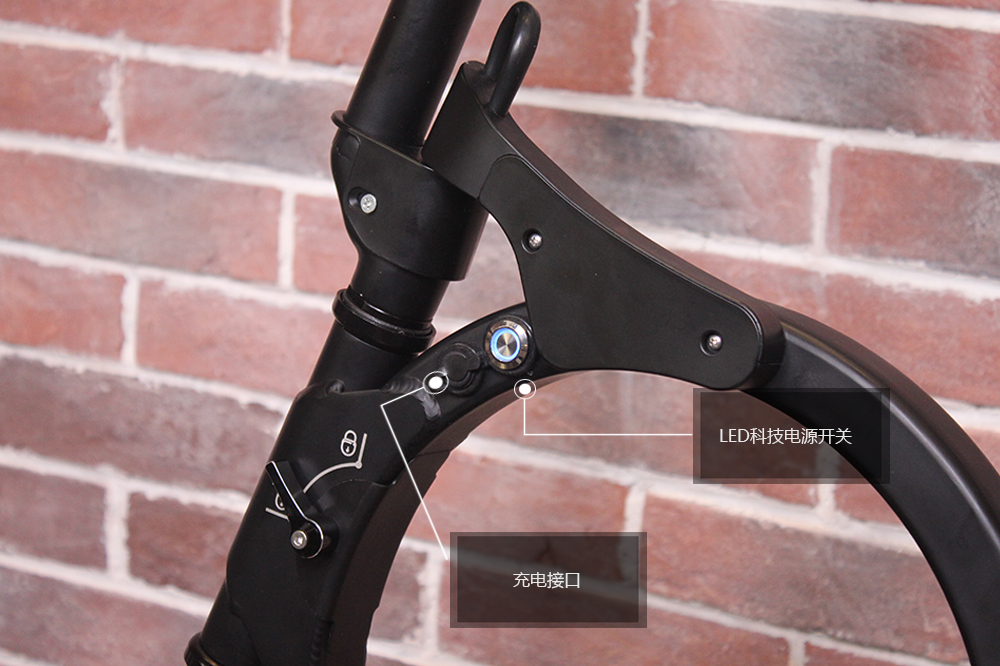 车架采用航空铝合金材质,可进行车把车身,做官,车踏四折叠,体积小重量轻。车体是依照人体工程学,材料力学,美学原理进行科学设计,具有很好的观看骑乘效果。