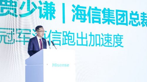 今日,海信在上海举行史上规模最大、参与范围最广的一次客户大会。海信集团总裁贾少谦发表《冠军海信跑出加速度》主题演讲。他表示,智慧新生活大幕开...