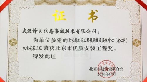 近日,由烽火旗下子公司武汉烽火信息集成技术有限公司参建的北京新机场(北京大兴国际机场)工程航站楼及换乘中心(核心区)机电安装工程荣获“北京市...