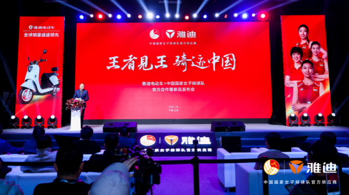 2020年1月15日,“王者见王 骑迹中国”——雅迪&中国女子排球队官方合作暨新品发布会在北京荣耀开启。双方宣布,雅迪与中国国家女子排球队正式结为“...
