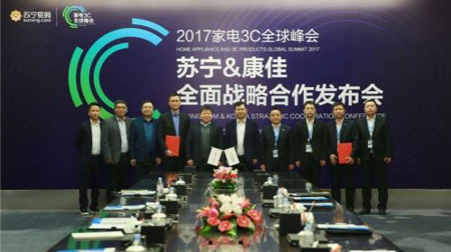 2017家电3C全球峰会在苏宁总部南京盛大召开,全球百余家知名品牌共赴苏宁,共谋行业大未来。2月28日下午,康佳集团股份有限公司董事长刘凤喜到访苏宁...